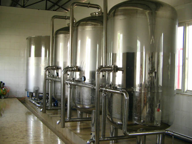 活性炭具有極強的吸附過濾性能,對水中的余氯、異色、異味、有機物等具有很強的吸附作用。由于反滲透膜對余氯、有機物十分敏感,所以必須配置活性炭吸附余氯、有機物,使出水余氯≤0.1mg/L,SDI≤4,滿足反滲透膜的給水要求。可通過隨時控制閥進行反洗,以沖洗掉其表面的污物,防止其堵塞,恢復其處理能力。